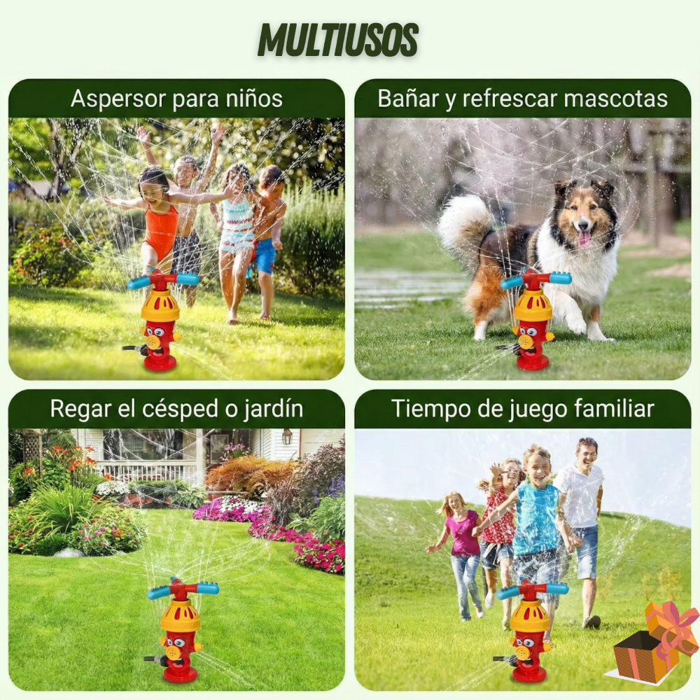 El Grifo Bombero Super Chorro no es solo un juguete, es la solución perfecta para esas tardes eternas de calor. Simplemente conéctalo a la manguera de tu jardín y mira cómo la magia ocurre. Su diseño giratorio dispara agua en todas direcciones, creando una lluvia refrescante que mantendrá a los pequeños (y no tan pequeños) corriendo, saltando y riendo por horas.