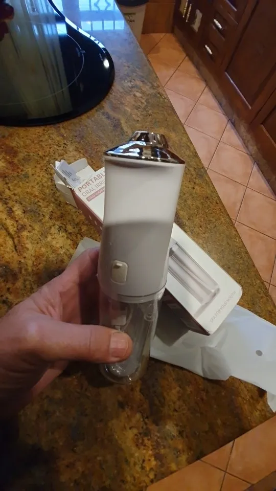 2️⃣ Apunta y cierra: Coloca la boquilla en tu boca antes de encenderlo. Mantén los labios entreabiertos para que el agua salga, pero no tanto como para terminar bañando el espejo del baño.